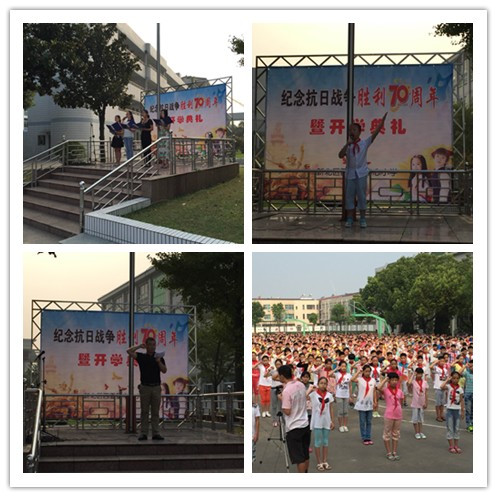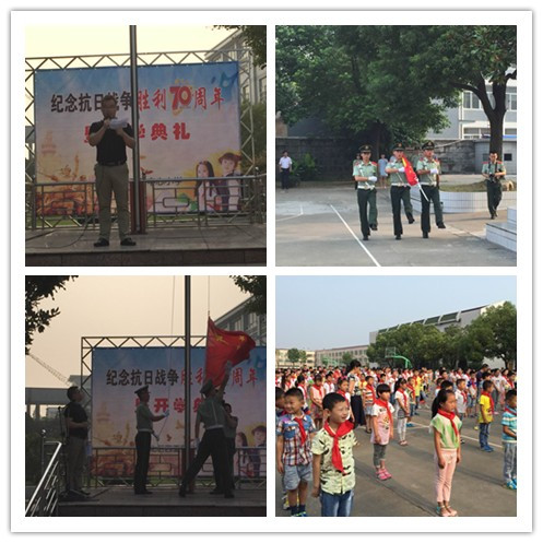 金秋九月,西小的学生在度过了一个平安愉快的暑假后又回到了熟悉的校园,开始了新学期的征程。9月1日上午,全校师生集中在学校篮球场,参加了主题为“勿忘国耻,圆梦中华”的纪念抗日战争胜利70周年暨开学典礼活动。 作为学校今年“弘扬和培育民族精神月主题教育活动”的开篇,本次教育活动的目的是对教师和学生进行重温历史、勿忘国耻、矢志振兴中华的爱国主义教育和民族精神教育,引导学生树立正确的人生观、世界观、价值观,增强学生的责任感和使命感,为实现中华民族伟大复兴的中国梦而努力奋斗。活动受到了学校领导和全体老师的高度重视,并特意邀请了驻西夏墅镇的武警水电第五支队的部分官兵同志参与了本次纪念活动。 上午7点40分,活动拉开了帷幕。首先举行了庄严的升旗仪式。三名武警战士,手持鲜艳的五星红旗,在全校师生的注目之下,踏着铿锵的正步,走上升旗台。伴随着激昂的国歌声,五星红旗冉冉上升,随之迎风飘扬在旗杆的顶端。 接着,武警水电五支队的李叔叔给同学做国旗下讲话。李叔叔通过生动的故事,带领同学重温了中国人民在民族危难之际,用自己的坚韧意志和血肉之躯抗击日本侵略暴行,取得抗战的全面胜利,维护国家主权的不朽历史。李叔叔还鼓励同学们好好学习,把自己锻炼成为一位对社会有用的人,让我们的祖国因我们而骄傲而自豪! 而作为年轻的一代,该怎样继承和发扬抗战精神,在自己的岗位上肩负时代的使命呢?4为新教师代表以一首《纪念抗日战争诗歌赞》的诗歌朗诵,表明了他们继承先辈精神,投身岗位工作,奉献青春的决心。五(4)班的郭星熠同学则通过主题为《《缅怀先烈,自强不息》的演讲,表达了自己不忘历史,缅怀先烈,珍爱和平,自强不息、展望未来的信念。 活动最后,学校大队辅导员杨老师带领全体少先队员在国旗下庄严宣誓:不忘国耻,牢记历史,继承和发扬抗战精神,好好学习,好好劳动,为实现伟大的中国梦而努力奋斗。 在本次纪念活动之后,学校将结合着纪念抗战胜利70周年,举行一系列活动,主要通过“看图展、看影视、读书籍、写感悟、做实事”等活动形式,全面向学生宣传抗日战争胜利的伟大意义,宣传中国人民在抗日战争中所表现出来的不怕牺牲、前赴后继、英勇战斗的爱国主义精神。让学生真正领悟到抗战精神的内涵,激励自己好好学习,从小立下远大的理想,准备着为实现中华民族的复兴而不懈奋斗。