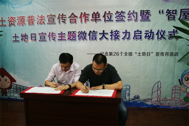 6月8日上午,在国土资源局新北分局与常报智屋交易联合举办的“智屋杯”土地日主题宣传微信大接力活动上,新北区团委与国土资源局新北分局签订了国土普法宣传合作协议,团区委副书记郭峥春参加了签约仪式。 新北团区委作为国土资源普法宣传合作单位,主要是帮助国土资源局新北分局做好全区国土资源普法宣传相关工作,特别是“6.25”全国土地日期间,对于全区校园中举办的相关宣传活动给予协调支撑,利用团委新媒体资源宣传我国土地资源的基本国情和基本国策,普及土地管理法律法规知识,大力推广保护耕地、节约用地、依法用地的理念,促进全社会认识珍惜和利用土地资源的重要性,在全社会营造依法依规、节约集约用地的氛围。