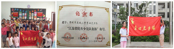 经过近3个月的焦急等待,五(3)班终于盼来了“江苏省优秀少先队集体”称号的授予。 常州市龙城小学的李四光中队是一个朝气蓬勃、团结向上的中队集体。队员们热爱祖国,热爱学校;爱学习,勤动脑;爱劳动,有爱心;有强烈的集体荣誉感和自豪感!队员们在活动中成长,活动促进了队员素质的全面提高。队员们先后参观了常州博物馆,常州市青少年科技中心活动中心,以此来增长队员的见识,开阔孩子们的眼界。还在2015年6月25日中国土地日这一天开展了中国土地日班会课,呼吁大家:保护地球、珍惜土地资源! 探秘常州博物馆,乐在其中 中队队员们为增长自己的见识,自发组织参观了常州博物馆,认真倾听博物馆阿姨介绍了历史文物陈列馆、动物类展馆和昆虫类展馆等。参观完了队员们兴趣不减,对自己不太了解的知识,课后积极查阅各种资料,并在班队课上进行交流。 畅游青少年活动中心,增添兴趣 队员们热爱科学的兴趣浓厚,随后又组织了一次活动畅游常州市青少年活动中心,在馆内了解了科技小知识,动手体验了科技仪器。队员们对馆内的机器人等非常感兴趣,对神秘的科学世界又充满了好奇心,队员们长大后都说想当科学家呢! 纪念全国土地日,开展主题班会 在今年,为了纪念全国第25个土地日,李四光中队先是在升旗仪式上为学校师生介绍了这一重要的日子,呼吁大家:保护地球,珍惜土地资源!随后,开展了全国土地日主题班队,分别介绍了李四光,中国地质地貌,随后还进行了知识问答,同学们纷纷收益良多。最后号召我们:保护耕地资源、节约集体用地、珍爱我们的家园! 争创校“特色中队” 队员们热爱科学的热情非常高涨,通过这几次的活动,队员们更加深刻认识到自己的努力目标。因此,李四光中队多次获得了学校的“特色中队”、“四好特色中队”“优秀中队”等称号。 五(3)李四光中队,一棵正在茁壮成长的幼苗,我们用团结向上弥补我们的不成熟,我们用朝气蓬勃弥补我们的不完善,我们更会满怀希望与激情加强各方面的协作努力,改进不足。过去的成绩是我们往后前进最大的动力,往后的路上,我们还会再接再厉,让龙城小学以我们为荣!