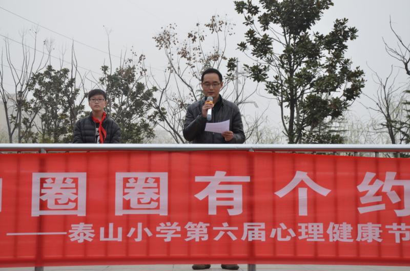 2016年3月7日,泰山小学以“我和圈圈有个约定”为主题的第六届心理健康节在校操场开幕。校长沈亚萍、副校长张石磊、邹益及全体辅导员、少先队员出席本次开幕式。 开幕式上,副校长张石磊为本届心理健康节致开幕词。他说关注心理健康,关爱自我成长一直是泰山小学工作的重点,希望同学们能“在我与圈圈有个约定系列活动中”学会珍惜自己,呵护自己,热爱自己,透过爱自己的方式,去一并热爱自己的生活,热爱自己的同伴,热爱自己生活的蓝天,感染身边的人,促进人际关系的和谐发展。他还简单介绍了本次活动的主要内容,鼓励队员们好好经营自己的亲人圈和朋友圈,并提出少先队员要多学习心理保健知识、多进行心灵交流、勇敢寻求心理帮助、培养自己的一样兴趣,并鼓励队员们积极参与心理健康节系列活动。 随后,大队部王俊杰同学宣读倡议书。她代表全体少先队员倡议:呵护生命,让自己的生命成长更健康;拥抱生活,让自己的生活更幸福;感恩社会,让自己的精神世界更出彩。经营人际圈,让自己与他人相处的更融洽和谐。 开幕式后,各中队都按照心理健康节方案内容积极宣传,为整个月的活动做好铺垫。 心理健康教育是泰山小学的特色风景线,相信,本次活动会再次给全体辅导员、少先队员带来全新的体验。