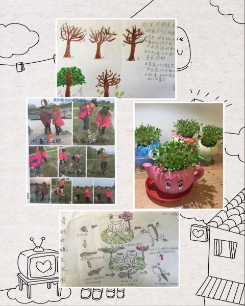 活动中,我们还通过阅读、查阅资料、亲自实践等方法去探索不同植物、不同动物的生长过程,感受生命的神奇和无穷力量。