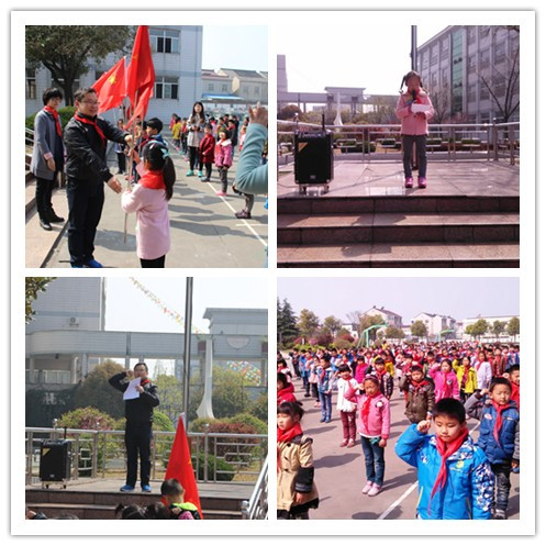 清明时节,缅怀先烈,让我们内心又一次激荡起对先烈们的无限崇敬,正是他们的甘洒热血,英勇付出,才换来了我们的幸福生活。我们知道,我们少先队员佩戴的红领巾上的红色,就是先烈们的鲜血染红的。为了铭记历史,激发队员接过先辈的旗帜,担起历史的责任,西夏墅小学把一年级的入队仪式就放在了清明之际举行,显得十分有意义。 4月1日上午,西夏墅小学一年级新生入队仪式在学校升旗台前举行。仪式由学校大队辅导员杨老师主持,活动在嘹亮的出旗曲中拉开了帷幕。队员们高唱队歌,表达了自己的激动之情。一年级组长陈老师宣布了一年级的入队名单,并让老队员们亲自为刚刚加入少先队的小朋友们戴上了红领巾。 “我是中国少年先锋队队员,我在队旗下宣誓……我决心遵照中国共产党的教导,好好学习,好好工作,好好劳动,准备着:为共产主义事业,贡献出一切力量!”新队员的宣誓声响彻校园上空。新队员代表杨知雨发言,表达了自己加入少先队的心情和奋斗目标。 随后,陈老师发表了热情讲话,对新队员表示热烈祝贺并向新队员们提出了希望和要求,希望他们能铭记历史,勇担历史责任,为胸前鲜艳的红领巾添光彩。 活动最后,大队辅导员杨老师带领全体队员呼号,号召全体队员好好学习,好好锻炼, 以行动争做优秀队员,让胸前的红领巾时刻激励自己不断取得一个又一个进步。