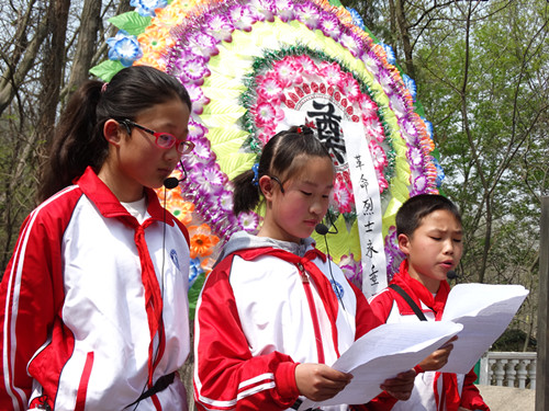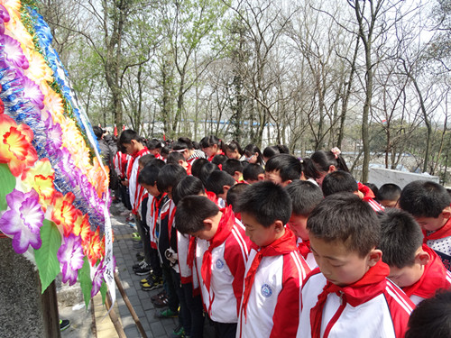 在这鲜花无语、苍松呜咽的时节,孟河中心小学的全体师生心潮澎湃、思绪万千。在高锋校长的组织下,我校举行了祭扫革命烈士墓革命传统教育活动,以此来寄托我们的哀思,激励学生继承先烈遗志,感恩幸福生活。 4月1日下午,4-6年级的队员在操场上集中,整队前往东山革命烈士墓祭扫活动。烈士墓坐落在苍松翠柏之间,师生们排着整齐的队伍拾级而上,怀着崇敬的心情向烈士敬献了花圈,向为国牺牲的先烈们致哀。接着,革命烈士故事宣传团的小成员们为全体队员讲述了为保卫家乡而英勇献身的7位烈士的事迹。最后大队长何禧丹代表全体少先队员在烈士墓前宣誓,表示不忘先烈精神、继承先烈遗志、努力刻苦学习、报效祖国,为实现心中的中国梦努力学习,乐观进取,并且要珍惜如今幸福的生活,感恩生命。 本次活动使队员们接受了深刻的革命传统教育,激发了队员的爱国热情,增强了队员奋发向上、立志报国的信念和决心,传承了中华民族的传统美德,让队员在革命先烈爱国精神的感召下健康成长。