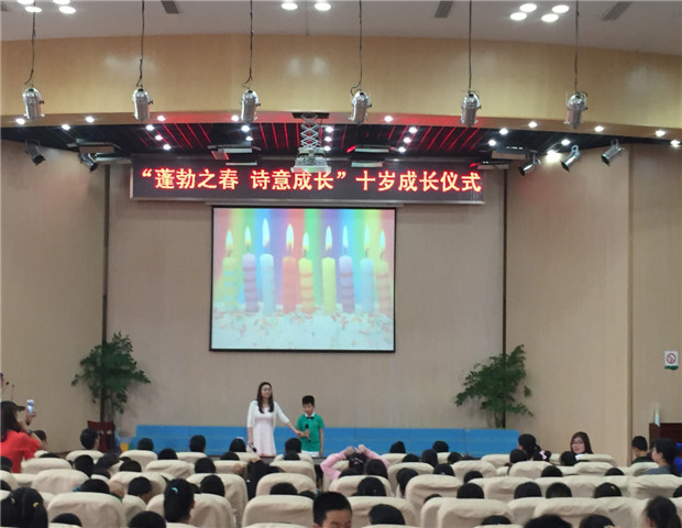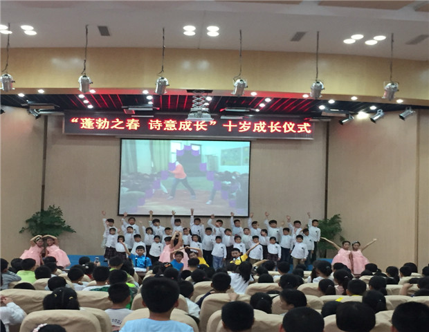 5月30日下午,新小三年级全体师生及家长代表齐聚报告厅,庆祝孩子“十岁成长仪式”。 在回忆孩子成长足迹VCR中我们开始了活动,首先是三(13)班的大合唱《共同长大》。歌声曼妙,舞姿动人,赢得观众们的阵阵掌声。让人不禁回想起了学校生活的点点滴滴。接下来还有课本剧表演、建模队和3D恐龙队走秀展示、英语短剧、家长寄语等。其中最令人印象深刻的就是拉丁VS街舞秀,活力四射,舞出了十岁孩子的生机和朝气。最后,孩子们在生日歌中许下心愿,怀揣着对未来的憧憬吹灭蜡烛。 十岁的梦幻能编织五彩花环,十岁的童心能拥抱缤纷世界。十岁是人生的一个分界点,更是迈向未来的新起点。相信这场仪式,必定让每个孩子印象深刻。并以此为起点,向自己的第二个十年出发!