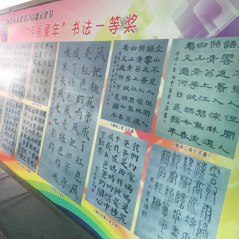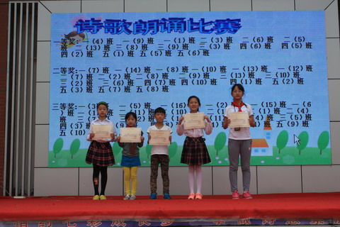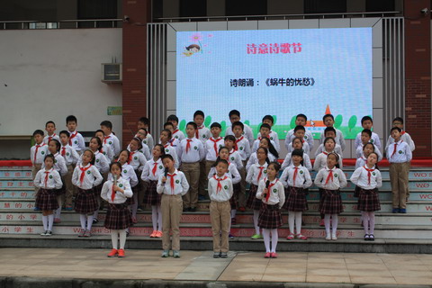 踏着诗歌的脚步,我们激情飞扬。 踩着诗歌的鼓点,我们快乐成长。 是啊!还记得火红的五月, 我们用诗歌吟唱生活的甜美, 我们用诗歌演绎动人的旋律, 我们用诗歌描绘梦想的色彩, 我们用诗歌感叹童年的精彩。