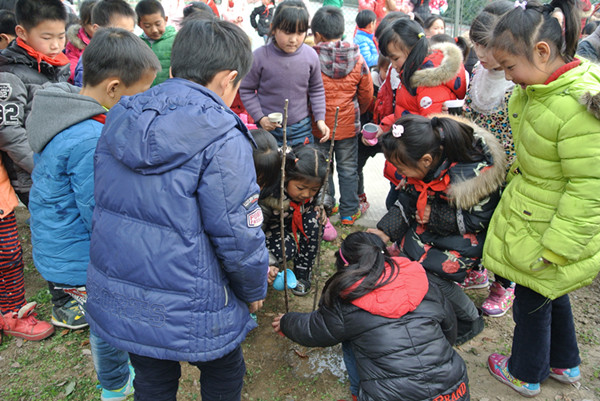 绿是春天的衣装,绿是生命的颜色。又一个植树节悄然走来,3月11日下午,罗溪小学少先队结合学校本月教育主题“学雷锋精神,做美德少年”的活动,以植树节为契机,组织一年级学生开展了“做一个绿色小雷锋”植树节活动。 活动中,孩子们情绪高涨、分工明确、各尽其职,挖坑、培土、浇水一点也不含糊,人头攒动,欢声笑语,一派热火朝天的劳动场面。经过大家的共同努力,一株株幼苗傲然挺立,看着经过辛勤劳动后整齐的树苗,大家心中的成就感和自豪感油然而生,体会到了融入自然、创造绿色的喜悦。 “十年树木,百年树人。”老师和孩子们种下的不仅仅是一株株小树,更是一份幸福与希望。今天我是一棵小树,明天我就是参天大树。通过此次活动,孩子们不仅亲身体验劳动的乐趣,还感受美化环境的意义,也培养了学生的环保意识。
