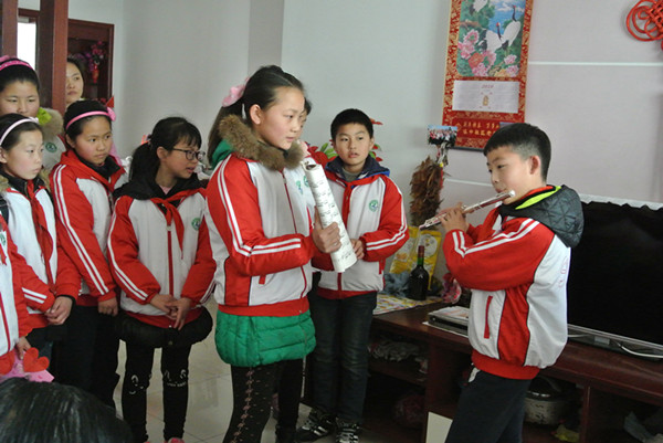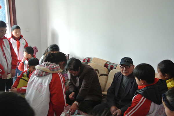 三月是学雷锋,做美德少年的好日子。3月17日下午,三十多位队员代表在大队辅导员丁丽霞老师的带领下,来到空巢老人家进行慰问,用真心和真情为老人送上一份关怀,把“向雷锋同志学习争做时代好少年”的精神落到实处。 曹爷爷和谢爷爷和蔼可亲,知道孩子们来看望他们,都早早地在楼下迎接。把孩子们引进门,热情地招呼大家坐下。慰问活动中,同学们及老师为老人送上了水果、牛奶、点心、手工作品等,为老人打扫卫生,还为老人表演了精彩的节目:魔术、笛子独奏、唱歌、相声、小品……一张张稚气未脱的脸上,映着满满的真诚。现场气氛异常活跃,爷爷和奶奶也高兴地和唱、打拍子。最后,同学们给老人送上了自己诚挚的祝福,和老人合影留念,纷纷表示有空会经常来看望他们。 通过此次活动让学生、老师在社会服务中获得更多的感悟,也弘扬了尊老、敬老、爱老、助老的传统美德。