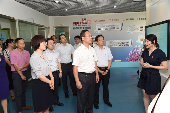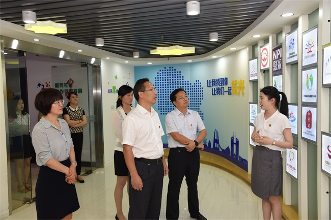 8月8日,团中央书记处书记徐晓一行到新北区调研共青团工作,考察了青年社会组织发展、青年创新创业、网上共青团建设等工作。团省委副书记司勇、团市委书记潘文卿、区委组织部部长嘉秀娟、副区长陈建生、团区委书记张沁怡及相关负责人陪同调研。 徐晓书记一行参观了河海街道H5次方公益空间,实地考察了青年社会组织的培育、孵化工作,详细询问了青年社会组织如何落地社区服务,并与龙城救援队队长助理黄健进行了亲切交流。