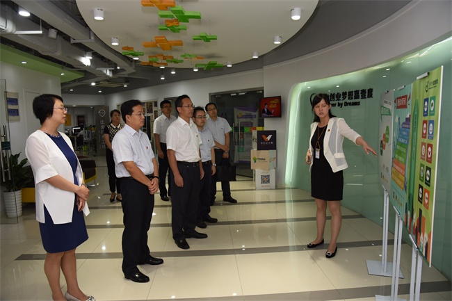 下午,徐晓书记来到嘉壹度青年众创空间考察青年创新创业工作及网上共青团建设。团区委张沁怡书记为来访领导详细介绍了嘉壹度建设理念、建设历程、运营架构等发展的情况,实地参观了嘉壹度一期创新工场的孵化区和嘉壹度二期(Templab温度加速器)空间,并与入驻的大学生创业团队进行了深入交流。
