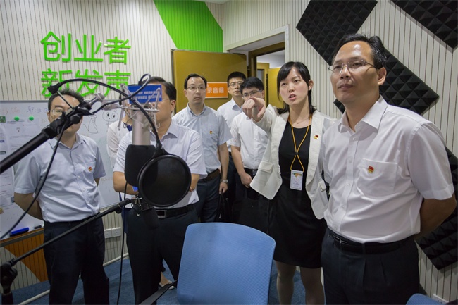 考察组一行还参观了青年之声·嘉壹度FM的录播室,了解青年之声电台日常工作情况。参观过程中,徐晓书记同电台工作人员进行了交流,小编朱玲智还向徐书记介绍往期节目的花絮照片,并赠送了青年之声·嘉壹度FM的精选刻录光盘。徐晓书记对新北团区委“线上+线下”创18luck手机客户端下载 青年的模式予以了充分肯定。