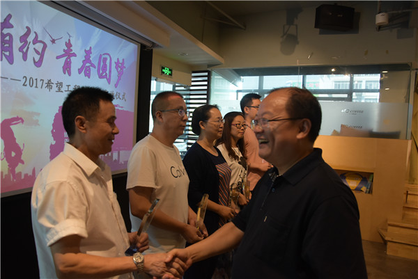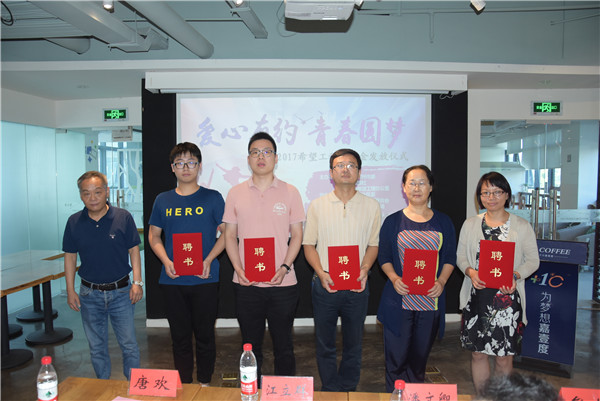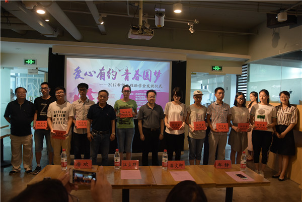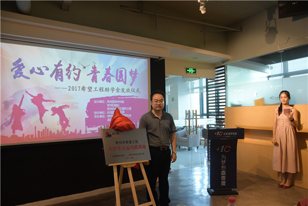8月27日下午,由常州团市委与常州日报社主办、新北团区委协办的“爱心有约青春圆梦”2017希望工程助学金发放仪式在新北区嘉壹度咖啡馆举行。共青团常州市委书记潘文卿、副书记牟静,常州日报社纪委书记江立群,常州晚报民生新闻部主任唐欢参加了此次活动。常州市中学生义工联盟的中学生志愿者代表们也来到仪式现场,共同见证常州市大学生公益服务队的成立,传承公益服务的理念。