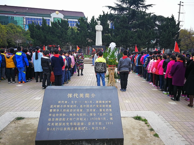 4月1日上午,小河中心小学联合孟河镇团委开展了祭扫先烈活动。我校四年级200多名少先队员怀着无比崇敬的心情,排着整齐的队伍,步行来到了恽代英广场,深切缅怀为了中国革命而英勇牺牲的烈士。当年就是他们用自己的血肉之躯,为新中国的诞生谱写了一曲波澜壮阔的历史篇章。站在烈士塑像前,队员们为今天的幸福生活而歌唱,为烈士英勇壮举而骄傲,为出生在英雄的家乡而自豪。 此次缅怀先烈活动是由我校四年级优秀队员姬浩泽同学主持。活动开始,少先队员代表向烈士纪念碑敬献了花圈,全体师生向革命烈士默哀一分钟。在默哀过程中,同学们保持安静,神色肃穆,充分体现了少先队员们对烈士的深切悼念。随后,学生代表周子开同学在烈士墓前介绍了英雄的事迹,以慷慨激昂的演讲以示对英烈的悼念。接着,一首由少先队员代表带来的诗朗诵《烈士墓前的诉说》更是让少先队员们心潮澎湃。然后我们的校外辅导员孟河镇团委葛美云老师也向队员们发出倡议,鼓励同学们继承先烈的遗志,从身边的小事做起,从提高自身素质做起,为祖国的繁荣富强奉献自己的青春、智慧和力量。紧在主持人的带领下,大家高举右手,向革命烈士庄严宣誓:“争当热爱祖国、理想远大的好少年;争当勤奋学习、追求上进的好少年;争当品德优良、团结友爱的好少年;争当体魄强健、活泼开朗的好少年。”伴随着昂扬的少年先锋队队歌,全体师生绕广场一周瞻仰恽代英雕像,结束了此次祭扫活动。 时间虽然不长,但通过此次扫墓活动,同学们受到很大的教育,都感受到和烈士相比我们是幸福的一代,生活在父母的关爱下,有良好的生活、学习环境,也认识到我们今天的幸福生活是无数英雄儿女用生命换来的,今后我们将以革命先烈为榜样,继承他们的光荣传统,学习他们的优秀品德,争做四好少年,为国家建设贡献力量。