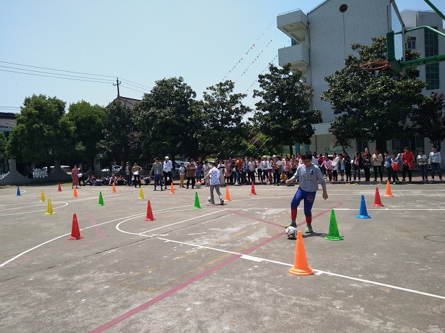 初夏的阳光洒遍美丽的校园,微风习习,而此时比阳光更灿烂的是学生脸上的笑容。今天的校园格外热闹,春季田径运动会和校园吉尼斯挑战赛将同时进行。开幕式拉开了比赛的序幕。潘校长激情昂扬为运动员鼓足勇气,运动员代表和裁判员代表的宣誓让公平、公正的竞技精神深入人心。比赛开始,让我们先来到运动会的比赛现场,感受一下紧张而又令人兴奋的比赛氛围。 田赛、竞赛交替进行。跑道上,运动员伴着伙伴们震天的呐喊声咬紧牙关向前冲刺。跳远、跳高、铅球、垒球,每一个运动场地上都有运动员拼搏的身影。不论比赛成绩如何,他们都赢得了班级同学最大的赞赏声。运动员在为班级荣誉而战,其他同学也没闲着。 跑后勤的同学身上挂着运动员的衣服,双手拿着矿泉水,嘴里还直念叨:“累不累?热不热?渴不渴?”忙得不亦乐乎。小通讯员顶着过分耀眼的阳光,埋头苦写,校园广播是他们的赛场,他们用文字为运动员加油助威,当通讯稿通过播音员的声音传遍整个校园时,属于他们的荣耀在他们心间升腾。别忘了我们的大小裁判员。裁判员老师掌控全场,小裁判员跑前跑后,查漏补缺,有了他们,才有了今天这场成功的校园运动会。 再让我们来到吉尼斯的现场,感受一下这欢乐的场面! 你瞧,这是一位一年级的小朋友正在进行一分钟拍球挑战!他小小的身体蹲着,肉嘟嘟的手快速地拍打着篮球,连计数的老师都跟不上他的节奏呢!拍完篮球,我们一二年级的小朋友还进行了羽毛球掷远比赛。今天的风可真顽皮,总是跟小朋友们作对,每位选手都使出吃奶的劲儿掷羽毛球,可是羽毛球偏不听话,飘飘然落地,惹得大家哈哈大笑。垫乒乓球、投沙包的场面也是趣味横生,每位选手都积极参与,展现自我! 让我们把镜头转向三四年级,看看他们在挑战什么?三年级的孩子在进行一分钟任意点投篮挑战。选手们或举投,或托投,举止滑稽,就看着篮球在篮筐上打了几个转,弹落在地上,引得围观者群众发出叹息声。也有那命中率极高的同学,让大家为之喝彩!随后进行了滚轮胎20米往返,有的孩子越滚越偏离轨道,急的同伴大呼:“回来!回来!”真是有趣极了!四年级的学生在进行一分钟夹乒乓球和20张纸牌叠高挑战。比赛很激烈,选手们全神贯注,屏气凝神,围观者仿佛能听到参赛选手紧张的心跳声。一不小心,乒乓球和纸牌就会掉落,但参赛者心无旁骛地坚持到最后! 五年级进行了足球绕标志桶往返,一分钟双摇挑战;六年级进行了趣打保龄球,罚球线定点投篮挑战。只听裁判员一声哨响,所有人的目光转向比赛现场,竞技项目在各自区域同时展开。顿时,呐喊声,鼓掌声,场面沸腾起来! 这一天的比赛,运动员们有喜有忧,但是永不言弃的比赛精神在他们身上展现得淋漓尽致。比赛已经结束,竞技精神仍在延续,让我们下一届再战!