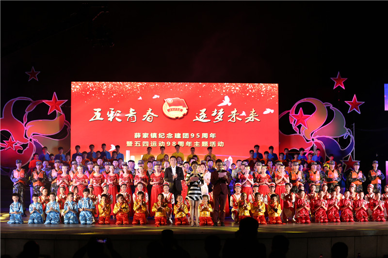 时光飞逝,薪火相传。98年激情热血,95载火红青春。5月3日晚,薛家镇团委在中心广场隆重举行“五彩青春、逐梦未来”——薛家镇纪念建团95周年暨五四运动98周年主题活动。江苏省发展和改革委员会郗文、李仁杰主任,共青团常州市委副书记潘儒,新北区委常委、副区长赵晶,新北区委组织部副部长巢峰飙,新北团区委书记张沁怡等领导、薛家镇党政领导班子成员、各相关单位的领导、社会各界团员青年代表以及2000余名观众聚集一堂,共同为青春放歌、为青年喝彩。 幻化闪耀的灯光、激昂动感的乐点,入夜的中心广场灯光璀璨,人声鼎沸,今夜这里是青年人的舞台。 《以青春的名义》彰显了薛家青年特有的阳光与活力,《我是龙城消防兵》则用摇滚快板诠释了我们身边这群穿梭火海的小伙子保卫一方平安的勇气。吕墅小学的学生们用一曲笛子演奏《我是一个兵》展现了当代少先队员的风采。男声小合唱《接过雷锋的枪》凸显了薛家镇青年志愿者们穿梭忙碌的服务身影。武警水电第五支队的官兵们用一舞《搏击》展现了一代代武警官兵用青春肩负使命、用热血搏击洪流、用脊梁承托希望的责任与担当,气势恢宏、寓意深刻的精彩表演催人泪下,获得观众的阵阵掌声;武术《中华武魂》、综艺表演《我的祖国》等节目赞颂了青年人逐梦未来、勇攀高峰的精神和勇气。 在晚会现场,统一表彰了通过前期组织推荐、个人自荐、社会举荐,“专家评审+大众评审”最终评选出来的10位薛家镇十大杰出青年、10位优秀共青团员和10位优秀青年志愿者,他们来自各行各业,有教师、民警、大学生村官、企业骨干、楼道长,虽然身份不同,但他们甘于奉献、勇于进取、奉献社会的精神却是一致的,值得我们每一名新时期的青年们学习。 活动最后,生命健康产业园区党工委副书记、管委会主任,薛家镇党委副书记、镇长周华军寄语广大团员青年,在生动实践中放飞青春梦想,在为民族振兴和国家富强的不懈奋斗中书写人生华章,勉励广大团员青年要坚定信念、百折不挠;勤学好问,弘扬正气;勇当先锋,建功立业,胸怀理想务实敬业,勇敢担当奉献社会。