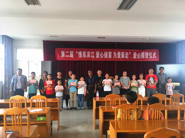 火热的6月,麦浪飘香,放眼田野,满目尽是丰收景象。6月12日,一场由滨开区安家服务中心、新北区社会组织发展服务中心、春江微公益志愿服务中心联合举办的爱心捐赠仪式在安家中学崇德楼四楼拉开了帷幕。新北区社会组织发展服务中心主任常逸非、安家中心小学副校长周剑飞、春江微公益志愿服务中心会计徐春莹以及参与为爱暴走公益挑战赛前十名的爱心大使代表、受助学生、家长共计50余名人参加了活动。