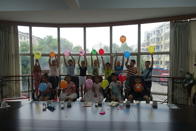 为丰富暑期青少年的精神文化生活,7月6日下午河海大学学生走进富都社区与15位小朋友一起开展了一场生动有趣的科技活动秀。活动中,大学生向大家介绍了两个科技新产品;带领大家做了三个有关鸡蛋的小实验,并讲述了其原理;教大家种绿色盆栽;活动最后让孩子们写下自己的梦想粘在汽球并放飞。