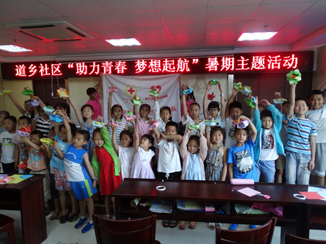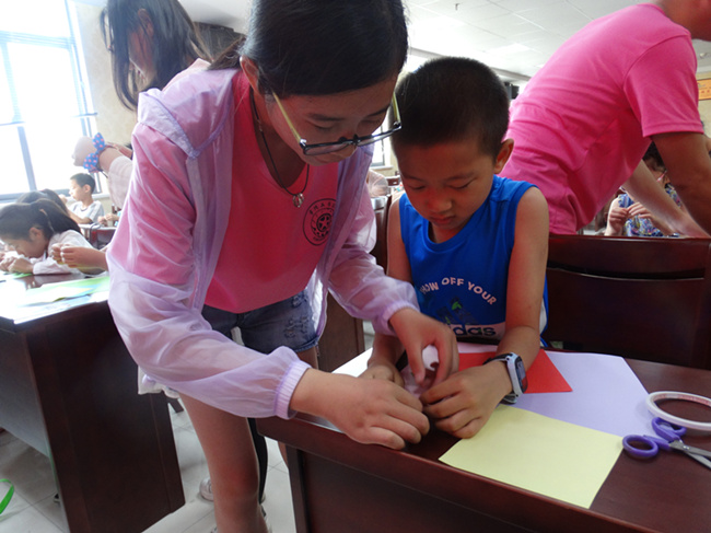“小朋友们,你们好,我们是常工院溢豪爱心家教的志愿者老师,我们会在这个暑假陪伴着大家,相信在这几次活动以后,每一位小朋友都能成为一位能工巧匠!” 7月16日,是常工院大学生来到道乡社区开展暑期活动的第一天,迎合道乡社区“助力青春,梦想起航”的主题,常工院大学生为道乡社区的孩子们带来了各色的手工课堂,希冀在这几次的活动中,能够让孩子们学会团队合作、坚持不懈的精神,并且能够让孩子们主动地学习新的知识,培养自己的兴趣,提高艺术修养。 第一次课是纸艺花篮的教学,精致的花篮吸引孩子们的眼球,轻松热情的课堂氛围让孩子们对于学习更有积极性,纸爱心的折叠告诉孩子们要学会感受爱,稍复杂的花篮让孩子们能够克服一个个难关,当经过一个多小时的努力,完成了自己的作品的时候,孩子们脸上天真灿烂的笑容是对这次活动最好的肯定! 都说兴趣是最好的老师,这次活动,并没有选择一味地辅导功课,而是抓住孩子们的兴趣,培养孩子们的动手动脑、自主学习的能力对于道乡社区的新市民子女来说是更为重要的,面对常州市较为普遍的新市民子女现象,新的公益教学方式对于他们更为迫切。这次道乡社区的这一系列活动也是为以后整个常州的公益教学作铺垫,实验以此掌握效果。 志愿者在更替,但志愿的接力棒永远在传递,孩子是城市新的未来,道乡社区在行动,大学生公益在行动,愿公益永不停息!