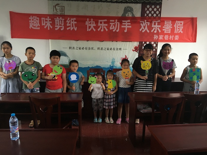 7月30日上午9点,孙家巷村委举行了暑期活动第二期“趣味剪纸做扇子”活动。前来参加的10名小朋友从小学到中学不等,有本村委户口的,也有外来流动人口家的小朋友,大家在一起其乐融融。 当准备活动做好后,外聘的钱老师先用其幽默的语气与小朋友融合在一起,她的一句“我姓钱,大家可以叫我美丽姐姐”更是引得全场大笑。正式开始后,钱老师一步一步的引导小朋友完成扇子的做法,先把卡纸对折,在卡纸上画出自己喜欢的图案,接着把瓦楞纸放中间,把图案剪下来,用双面胶把3个形状粘在一起,最后,用筷子插进固定住的形状中间,就这样,一个简易的扇子做成了。活动临近结束时,钱老师与大家相约明年活动,教大家做寿司及饼干之类的食品,让在场的小朋友们兴奋不已。 此次活动的召开,不仅丰富了孩子们的暑期生活,更锻炼了他们的动手能力,以及相互之间的交际合作能力,希望他们能拥有一个快乐的暑假。