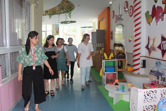 2017年9月15日,龙虎塘街道中心幼儿园玲珑和盘龙两个园区,迎接了百丈幼儿园30多名幼教同仁的来园参观交流活动。 中午,在各园区蹲点负责人的陪同下,姊妹园的老师们参观了各年龄段的走廊区域和班级环境创设。聚焦主题的走廊、小窝温馨的教室、功能齐全的专用活动室……这些既是孩子们游戏生活的乐园,更是学校润泽理念的深入践行。龙幼的每一面墙、每一条走廊、每一间教室中,无一不折射出龙幼人从课程视角出发,遵循幼儿需求的润泽理念。同行的老师们对我园的区域和环境创设产生了浓厚的兴趣,他们边看边拍,赞叹不已。 作为省级示范性幼儿园,我园经常接待省、市等周边地区幼教同仁们参观与学习,充分发挥示范园的基地示范与辐射作用。参观交流活动,对幼儿园的工作是一种肯定与鼓励,更是一种鞭策与激励。我园将一如既往地扎实开展好每一项工作,在园所文化建设的道路上实现新跨越!