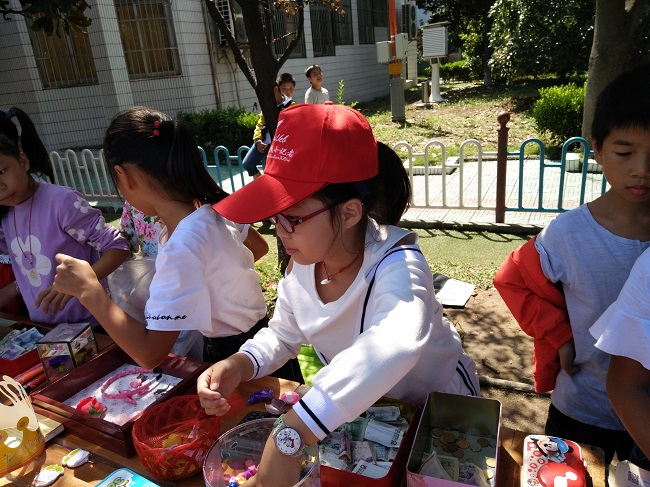 秋高气爽,丹桂飘香 金色的阳光照耀在义卖场上 映衬着“小荷娃”们热情的脸庞。 近日,在小河中心小学少先队大队部和各中队辅导员的精心策划和组织下,一场红领巾爱心义卖活动在大操场上拉开了帷幕。 活动前期,小河中心小学三至六年级各中队每位队员捐献出1~2件七、八成新、质量完好的物品给各自的中队作为义卖商品,义卖品多为书籍、学习用具、玩具、小制作等。 在人头攒动的义卖现场,各中队纷纷挂起了自己班级的宣传海报和小黑板,设计精美,别具一格。 少先队员们摇身变成卖家或买家。 “卖家”使出浑身解数,倾情推销自己中队的义卖品,有打折促销的,有满额抽奖的,大家忙得不亦乐乎。 “买家”则精挑细选,讨价还价,努力淘着自己心仪的“宝贝”。此起彼伏的叫卖声、吆喝声、欢笑声回荡在操场上空,现场俨然变成了一个热闹非凡的物资交流市场。 老师们也欣然投入其中,带头献上自己的一份爱心。师生携手努力,沉浸在这妙趣横生的活动氛围中,凝成了这金黄秋日下小荷园里一道独特的风景。 卖品有价,爱心无价。经过这次的义卖活动,小荷娃们不仅组织能力得到提高,团队合作精神得到培养,也更加了解慈善的意义,同时,荷娃们定会在活动中感受到“授人玫瑰”的快乐,成长为富有爱心的孩子,将温暖播撒到每一个角落!