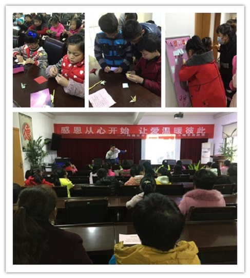 为培养青少年牢记父母的养育之恩,老师的教诲之恩和社会的关爱之情,增强他们的爱心和社会责任感,让青少年懂得感激生命,学会珍爱;感激他人,学会关心;感激社会,学会回报。在感恩节到来之际,玲珑社区联合常州石油工程学院团委实践部开展了“感恩从心开始让爱温暖彼此”的青少年活动。 活动伊始,团委实践部的大学生志愿者用PPT展示的形式从国家、父母、朋友等方面学会感恩,进一步让青少年知道感恩是每个人应有的基本道德准则,是做人的起码修养。大学生志愿者还手把手指导青少年折小小千纸鹤,送给自己最想感恩的人,写下最想说的话贴在感恩留言墙,以此通过感恩入脑入心教育,让青少年懂得对生活和他人心存感激,学会理解和关心,学会感恩图报。