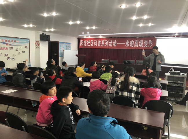 为让孩子们从小养成学科学、爱科学、用科学的意识,11月25日,河海街道阳光社区联合常州石墨烯研究院,组织辖区青少年开展了主题为“水的高级变形”科普实验活动。 在潜水艇实验中,研究院老师利用简单的矿泉水瓶与小药瓶制造出简易的“潜水艇”,通过观察“潜水艇”在水中的变化移动,让孩子们学习到了“潜水艇”由于不能依赖体积膨胀和收缩改变浮力,只能通过调整自身重量实现上浮下浅的科学原理,从而了解到水与人类生活的密切关系。整场科普活动利用实验、互动、以及科学原理讲解形式,让孩子们自己动手,亲眼观察到大气压强、张力、浮力在生活中的运用。 科普教育寓教于乐,让孩子们在实验中学到了科学知识,萌发探求科学知识的愿望,打开了孩子们的科学之窗。