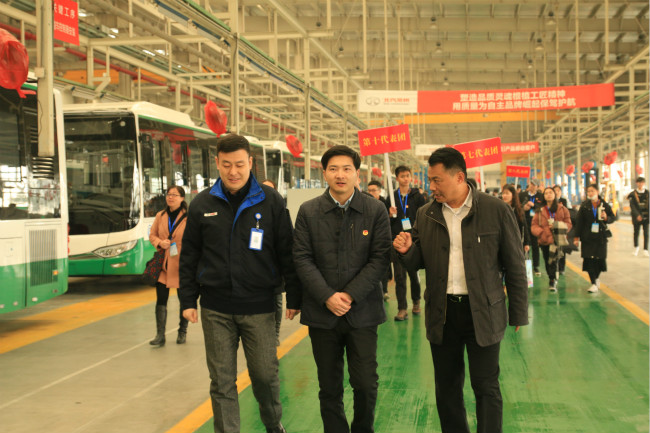12月23日下午,团市委副书记张博赟、团区委书记张沁怡带队共青团常州市第十六次代表大会全体代表共计300余人来园区内北汽常州公司进行参观。镇党委副书记徐惠、宣统委员贺宝琛、北汽常州公司党群工作部部长韩征等陪同参观。 徐惠对张博赟一行的到来表示了热烈欢迎,陪同代表团一起参观了焊装车间及总装车间职工小家、轻客车间及总装车间的生产线以及办公楼前样品车等。韩征围绕企业概况、生产经营、产品类型、党建成果等方面为代表团进行了详细介绍。 来自溧阳的团代表们对车间内生产的溧阳城市公交产生了浓厚兴趣,纷纷赞叹常州公司为公交事业发展所作贡献,对全新车型进入溧阳市场表示了热切期待。 张博赟对北汽常州公司一年多来快速发展取得的成果表示了肯定,对常州公司进一步实现转型发展充满信心。同时,他希望常州公司加快产品研发进程,立足江苏市场,拓展国内业务,不断扩大“北汽长江”品牌影响力。