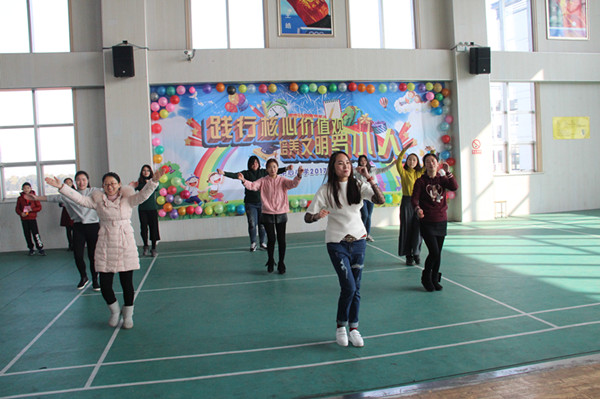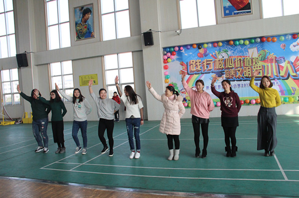第一篇章——“爱学习”,队员们从徐建峰副校长生动的演讲中感受到学习的重要性。女教师集体舞蹈《天天向上》,给队员们送去新学期的祝愿——天天向上。队员们也被老师的热情感染了,一起跳了起来。