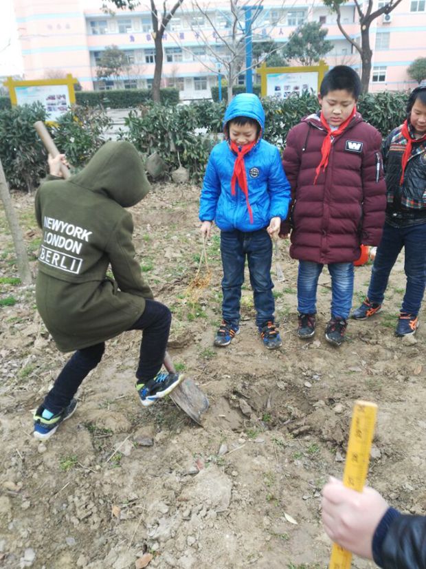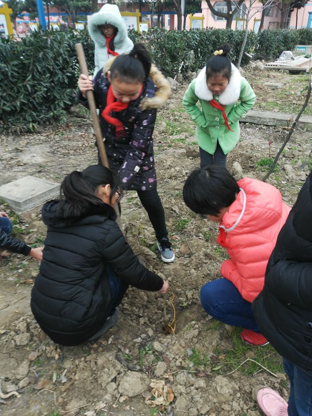 瞧,在辅导员老师的带领下,少先队员们在有则爱心园里栽下绿色的希望。他们先是买来了五十多棵小桑树苗,然后去向有经验的桑农讨教经验,最后在爱心园里丈量尺寸、挖坑,栽苗,培土,浇水……挥洒着辛勤的汗水。相信小树苗们会很快生根发芽,茁壮成长!