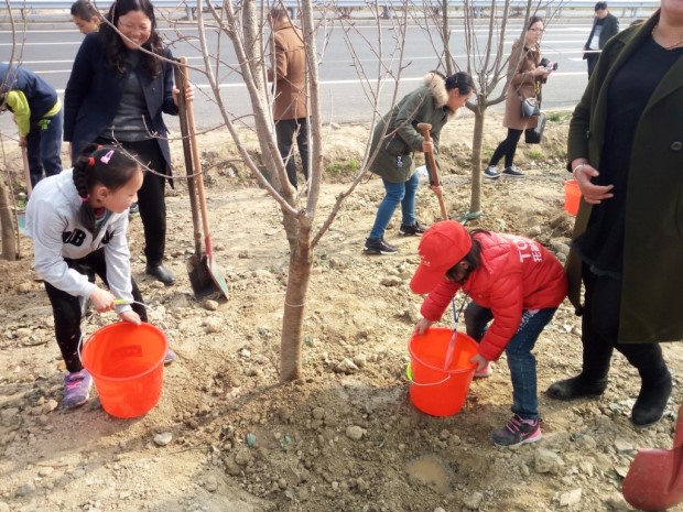 3月11日上午,西夏墅小学红领巾小记者社团的部分队员,在学校辅导员老师的带领下,来到江苏省美丽乡村——西夏墅镇梅林村,参加由镇政府主办,梅林村承办的2017年公益植树节活动。此次活动的主题是“共植幸福树,众创新常州”,活动吸引了市内外数百人的参与。 在活动的启动仪式上,区委常委、宣统部长杨光同志发表了讲话。杨部长肯定了梅林村的建设成果,阐述了此次公益活动的意义,并呼吁大家共同植下“幸福树”,为家乡建设,为常州的发展而努力。 参加活动的小记者们纷纷在活动主题幕墙上写下自己最美好的植绿护绿的心愿,希望大家一起为创造绿色美丽的新常州而出力。 启动仪式之后,小记者们就拿起铁锹、水桶等工具,加入到了植树的活动中来。在长辈亲人的帮助下,小记者们挥锹培土,种下了一棵棵小树,为美丽梅林再添一片绿色,为建设“强富美高”新常州贡献一份力量。 活动最后,小记者们纷纷领上了一份活动的纪念品——盆栽绿植。他们将用心养护着一棵自己的“幸福树”。这次极富意义的活动,也将在这些孩子的心间种下一颗植绿护绿的种子。 (撰稿:杨伟 摄影:杨伟)