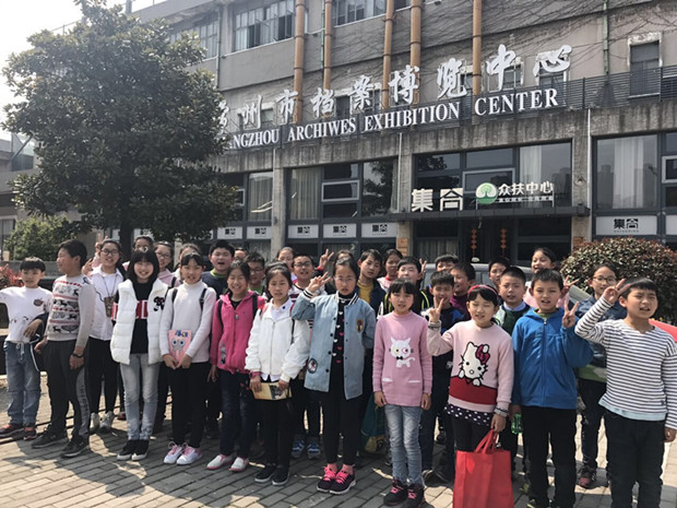 离开了美丽乡村,队员们又来到常州市档案博览中心。档案博览中心位于运河五号创意街区。这里有我们龙城的记忆,既有常州档案史料陈列馆,又有常州百年工商档案展示馆,还有常州市全国劳模档案展示馆等。在常州档案史料陈列馆,同学们看着一个个档案史料,追溯着常州历史文化名城的社会发展历程,常州人民建设宜业宜居宜游现代化城市的奋斗征程。在常州百年工商档案展示馆,队员们看到好多老档案、老设备、老产品、老场景,理解了昨日常州工商业从无到有、从小到大、由弱到强的历史轨迹,理解了常州今日经济辉煌和明日发展远景。在常州市全国劳模档案展示馆,面对那么多图片、实物,队员们了解了常州不同时期的劳模风采和劳模精神。