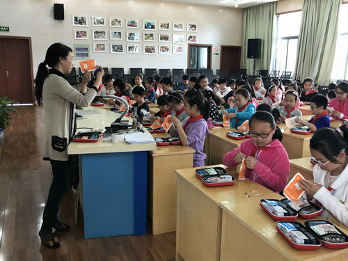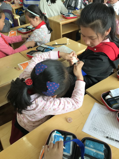 为进一步提高我校各中队卫生员的急救护理知识和技能,4月27日中午,各中队红十字卫生员参加了校医潘洁清老师主持的急救包使用培训活动。活动初期,潘老师带领大家打开急救包认识里面的医疗用品,我们发现里面的东西还真不少,有碘伏、棉签、纱布、止血带、三角巾、创口贴等等。同学们打开后一一认识了,可是又该如何使用呢?带着问题,潘老师逐一为大家做了详细的解答。原来碘伏在使用时要先从里往外的擦拭;止血带要绑定在伤者的近心端,而且每一小时就松绑一次;急救过后的污物要妥善处理不可以乱扔等等本次活动,主要采取多媒体教学和实践操作相结合的方式,主要针对我们学生在校园内碰擦伤的急救护理知识进行详细讲解。参活动的少先队员认真听讲,踊跃练习,教学互动气氛活跃。最后潘老师教导大家小学生要学会帮助和自我保护,在自己力所能及的范围内帮助别人。