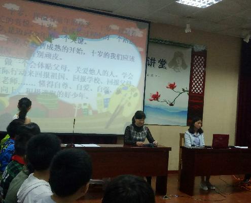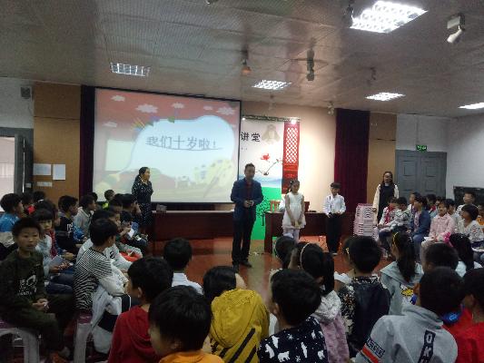 十岁,是成长过程中的一个站点,它意味着孩子们即将告别幼稚的童年,开始迈入憧憬无边的少年时代。为了让孩子们能够记住这个值得纪念有意义的日子, 5月5日下午12点,新北区新华实验小学全体三年级学生和家长在阶梯教室举行了十岁成长礼的庆祝活动,使孩子们回味自己的成长经历,体会父母养育的辛劳,学会感恩。让孩子们与父母、老师一起互动,体验、分享成长的快乐与感动。活动以“成长篇”、“感恩篇”、“祝福篇”、“梦想篇”为主线展开。 全体学生和家长们首先观看了《孩子成长过程》,了解到十年前的某一天,妈妈在经受了一番艰辛之后,迎来了我们的诞生。然后三(2)班全体学生给我们带来了充满韵味的诗朗诵《今天我十岁》、三(1)班同学感人至深的手语歌《感恩的心》、学生精彩的书法表演,一次次温暖着全场师生与家长们的心。最后三年级全体学生双手合十,集体许愿,现场制作梦想树;家长送祝福;校长致辞,把活动再一次推向了高潮。 十岁成长礼庄严、温馨、感人。它诠释了生命的意义,深深地印刻在了孩子们的脑海中,让孩子们牢记过去,从而学会感恩,学会珍惜彼此的亲情,长大后做一个真正能顶天立地的人。
