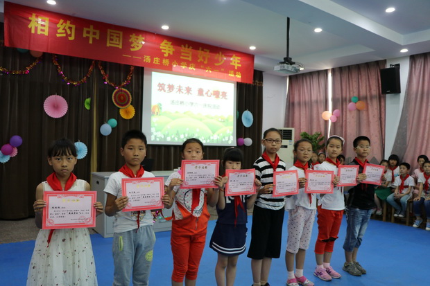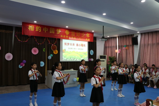 六月,是童年的摇篮。六月,是童年的太阳。汤庄桥小学的少先队员们带着喜悦一同走进“六一”儿童节!6月1日下午,“筑梦未来 童声嘹亮”六一庆祝活动在四楼阶梯教室隆重举行。 首先,卢老师宣读了关于“汤庄桥小学第三届‘最美学生’的表彰决定”,他们彬彬有礼、活泼自信,他们心怀感恩,做事诚信,为全体队员树立了榜样,校领导为获奖队员颁发了奖状,并鼓励其他队员向他们学习,不断开拓、创新、拼搏、进取。 接着,就是大家最为期盼的“汤小好声音”决赛环节。经过前期的海选,进入决赛的有来自十个班级的代表。选手们在舞台上尽情地展示了自己的才艺,用自己动听的歌声和不俗的舞台表现,展现着各自独特的魅力。不同的唱法,不同的风格,调动了在场观众的热情气氛,场上掌声不断。经过激烈角逐,六(3)班的《为梦想时刻准备着》和六(4)班的《同桌的你》获得一等奖,其余班级分别获得二、三等奖。 “六一”庆祝活动中,清脆的歌声唱出了孩子们心中美好的向往,传递着乐观向上的正能量。孩子们活泼、自然的舞台表现,感染了在座的老师和同学,赢得在场观众和评委的阵阵掌声,艺术气息弥漫在学校的每一个角落。