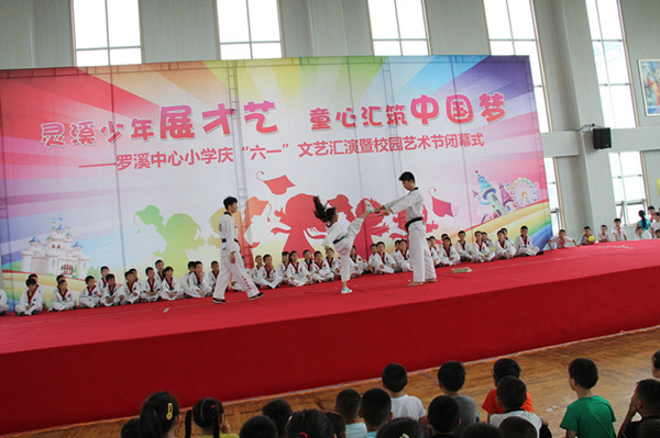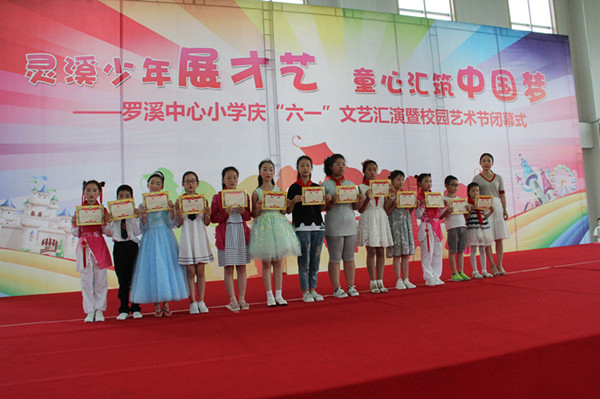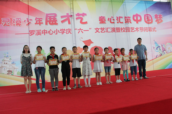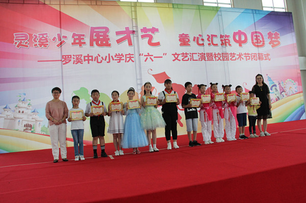 2017年6月1日,是第68个儿童节。每年的“六一”是孩子们最盛大的节日,也是孩子们最开心的日子。为了丰富孩子们的文娱生活,罗溪中心小学精心筹划安排了“灵溪少年展才艺 童心汇筑中国梦”庆“六一”文艺汇演暨校园文化艺术节闭幕式活动。 首先,殷国伟校长为本次庆祝活动发表了热情洋溢的致辞,优秀家长代表仇李芳女士作了发言,向孩子们送去了节日的祝福;徐建峰副校长、卢庆平主任、钟红霞主任、丁丽霞老师分别宣读了“优秀少先队员”、“优秀家长”、“优秀辅导员”和“艺术节活动”的表彰决定,并为获奖人员颁发了荣誉证书。 接着,由一年级小朋友带来的舞蹈《小鸡小鸡》,生动形象、可爱无敌,拉开了本次文艺汇演的序幕。栩栩如生的校园自护剧表演《不上你的当》、三年级活泼风趣的舞蹈《大王叫我来巡山》、校园十佳歌手代表杨浩、易立童趣纯真的合唱《虫儿飞》、二年级小朋友动感十足的哑铃操《my oh my》、四年级感人至深的手语舞蹈《跪羊图》、五年级活力四射的歌伴舞《宠爱》、炫酷的跆拳道表演、六年级诙谐欢快的恰恰舞《快乐老家》、最后徐婷婷老师指导的大合唱《当你老了》、《快乐的节日》将全场的气氛推向了高潮。此次活动充分展示了孩子的活泼个性,给每个孩子一个展风姿、献才艺的机会,让他们去参与、去体验、去感受。这些精彩节目,从构思到最终节目成形以及演出服装、化妆等细节,无处不渗透着学校全体老师的智慧和汗水,最终呈现出一场精彩的文艺汇演。 文艺汇演结束后,孩子们在各自的教室里开展了丰富多彩的庆祝活动。 童年的六一是多姿多彩的,它如一首歌,唱遍天涯海角;它如一本书,记载着美好的回忆;它如一杯酒,散发出迷人的醇香。让我们一起聆听用童年音符谱写的旋律,那是人生最美的乐章!在属于孩子们的快乐节日里,祝愿他们健康快乐、茁壮成长!