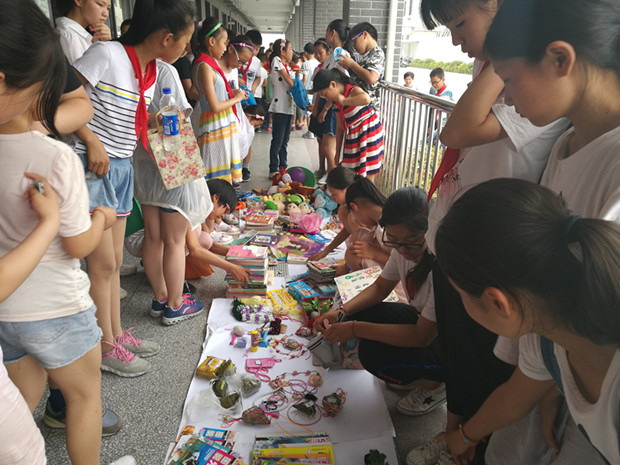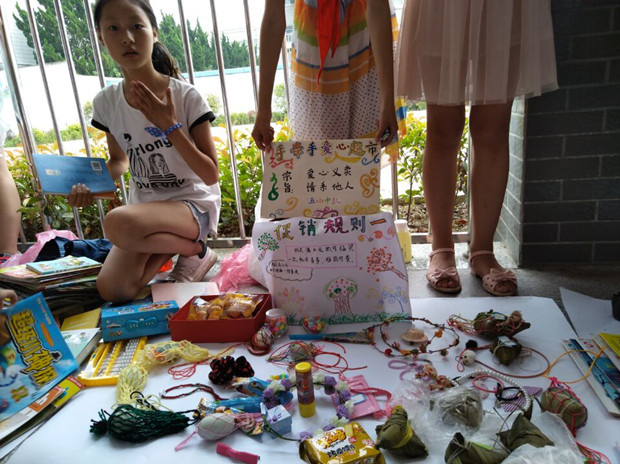 2017年6月1日,是国际六一儿童节,常州市新北区孟河中心小学在儿童节当天组织了全校性的红领巾义卖活动。 当日下午3点,常州市新北区市孟河中心小学开展的主题为“阳光六一,与爱同行”爱心义卖活动热闹开场,全校近千名学生和学校教职工爱如潮涌般的积极参与。义卖主要集中在博学楼的四层走廊上,队员们将课桌椅搬到走廊,形成了义卖小集市,活动中有的队员在自己的义卖摊位上热情吆喝,有的队员则走到别的班级,在热烈的讨价还价中,买到了自己心仪的物品。经过近两个小时的义卖活动,队员们收获颇丰,各中队通过义卖筹得义卖的爱心基金,后期将由学校统一捐助给贫困孩子们,全面展开“六一”儿童节开展“学名医,献爱心”的爱心帮困行动。