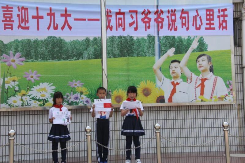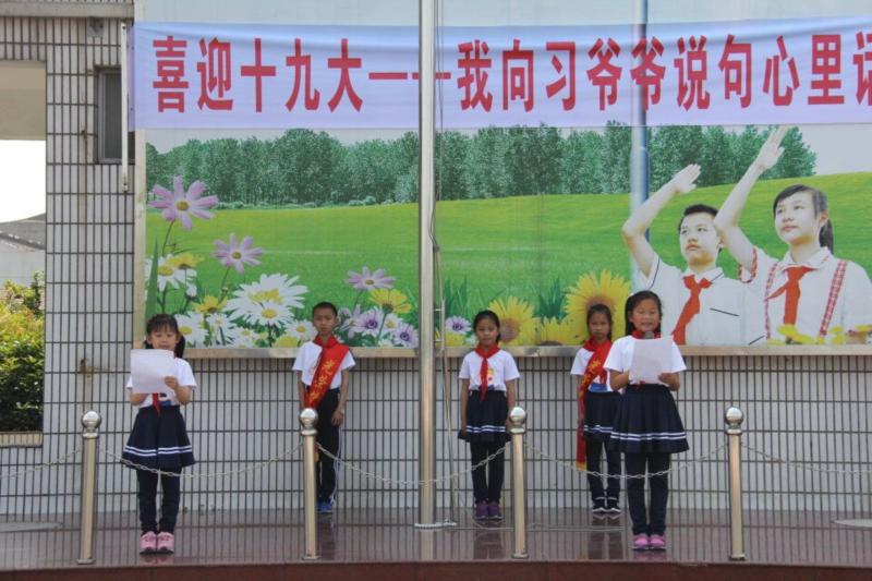 夏意渐浓,空气里弥漫着热情的气息,迎接十九大的喜悦充斥着吕墅小学的校园。瞧,校园里正在举行 “喜迎十九大——我向习爷爷说句心里话”为主题的升旗仪式。 鲜艳的五星红旗伴着国歌冉冉升起,迎风飘扬。大家精神饱满,以蓬勃向上的面貌喜迎将要召开的十九大。 二(1)班的小朋友们畅所欲言,纷纷说出了自己内心想要对习爷爷说的话,并把这些话语创作在手抄报上,有向习爷爷说出了自己感受的,有表达了自己志向与梦想的,还有的则表达了自己对祖国的一份深深的祝福与希望......他们用稚嫩、朴实的声音,说出了最动人的话语,表达了最真挚的情感。竹笛演奏《小星星》清新悠扬,自信的小朋友们都在极致得表现着自己的才艺,诚意满满;陶睿小朋友的电子琴独奏,更是婉转流畅,不经意中给人惊喜。 在场的每一位老师和学生积极昂扬的面貌都在自主表达纯真的情感,积极响应党的号召,积极表达真实情感,为实现中华民族伟大复兴的中国梦时刻准备着!