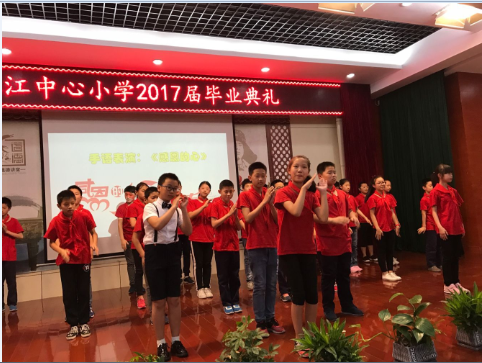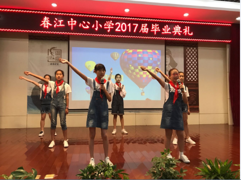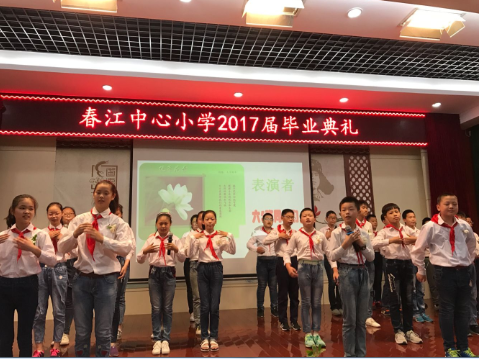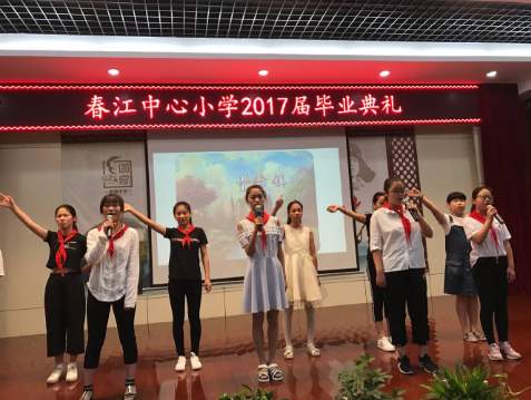 火红的六月,是毕业的季节,更是收获的季节。随着毕业季的真正到来,春小的毕业课程实施走向了高潮。最激动人心的就是6月23日的毕业典礼,全体毕业班师生用他们的智慧和才情谱写了 “童声留影,点亮青春的底色”毕业典礼的美丽诗篇。 本次活动分为四大篇章,在“追忆童年”“才艺展示”“师恩亲情”“校长寄语”中我们领略了别样的精彩,感受着浓浓的情谊。 第一篇章:忆往昔,追寻成长的足迹 从2011年到2017年,从懵懂天真的孩童到心怀梦想的少年,一路走来,有笑有泪。屏幕上一张张充满童真的毕业特色合影,洋溢着毕业班少先队员的灿烂笑脸;一张张快乐活动的照片,再现着毕业班少先队员六年的精彩生活。 第二篇章:看今朝,谁持彩练当空舞 六年级的莘莘学子身怀绝技,在毕业典礼的舞台上“八仙过海,各显神通”。 有歌曲《告白气球》、舞蹈《singal》、器乐合奏、快板、朗诵、相声《马路奇遇》《吹牛大王》等等,少先队员们造型可爱,惟妙惟肖,台下掌声连连,笑声阵阵。一个个或振奋,或欢快,或激昂的少先队员们喜爱的经典节目,充分展示了全校同学多才多艺,朝气蓬勃,如春向上的特质。值得一提的是本届毕业学子在情景剧的演绎上有着不俗的表现,一颦一笑间是逼真的演绎、风趣的表达和创新的呈现。无论是剧目《上课要听讲》还是穿越版《新愚公移山》,都给在场的家长和师生留下了深刻的印象,他们果然是出彩春小娃! 第三篇章:展未来,拳拳赤子感恩心