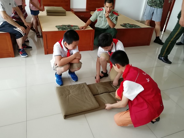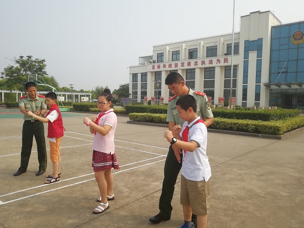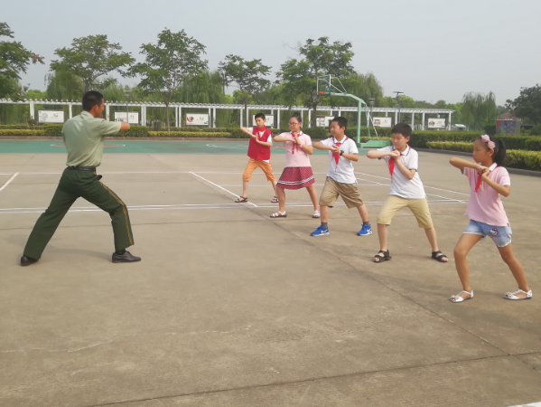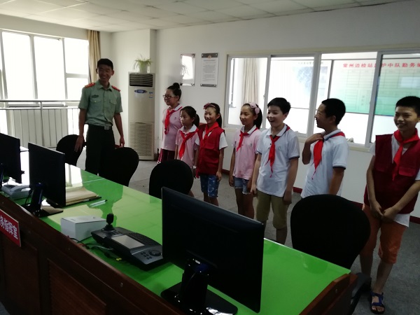 “哇,我终于走进军营了”。伴着少先队员们的惊叹声,在“八一”建军节前夕,春江中心小学红领巾寻访小队的“春笋娃”们,在老师们的带领下,走进了武警常州边防检查站监护中队。 此次活动中,少先队员们学习了中国人民解放军的军史,在帅气的边防武警叔叔指导下学习防身拳术、体验武警叔叔的器械训练和日常的生活。队员们们还参观了武警叔叔的营房,干净整洁的营房让同学们大开眼界。武警叔叔们手把手地教叠被子,队员们一个个认真努力,学的有模有样,还真有小军人的气概呢! 随后少先队员一起参观了边防检查站监护中队指挥中心,队员们对现代军人的生活充满好奇。在与武警叔叔们亲切的交谈中,进一步了解现代军事、贴近了现代军人的军旅生活。随后,春笋娃们和春小的辅导员老师一起为武警常州边防检查站监护中队的武警叔叔们送上了防暑降温品,表达对武警叔叔的深情厚爱和感激之情。 走进警营的活动,让队员们接受了一次身体力行的爱国主义教育,使他们磨炼意志、锻炼身体。春小在暑期为春笋娃们提供了丰富的暑期活动,让孩子们在暑假能有学校以外宝贵的学习经历,也成为春小特色动感中队的一道靓丽风景。系列寻访活动,有助于少先队员们建立正面积极的人生观,培养服务社会,与人协作、团队友爱的精神。 (撰稿:吕坚 摄影:吕坚 审核:周海娣) |