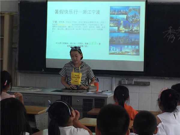 金色的九月,秋风习习,硕果满枝。在这个醉人的季节,西小的“青藤娃”们带着暑期学习、活动的满满收获回到熟悉的校园,满怀激情,开始新的学习之旅。 为了更好地彰显学校暑期“嬉夏”系列活动的教育效果,引导孩子充分展示多彩的暑期生活,秀出自己在各类学习活动中的风采;同时也是启动本学期的“民族精神月”主题教育活动,在学校校长室和学生处的引领下,全校师生于9月1日到9月4日,热火朝天地开展了主题为“中国骄傲,我骄傲”的开学活动课程。 “嬉夏”活动分享 秀出自己之骄傲 9月1日下午,西小的校园里充满着孩子们欢快的笑声,留下了他们尽情展示自我的身影。半天的时间里,孩子们骄傲地展示着自己在暑期“嬉夏”活动中的收获,交流分享着自己文化学习、实践活动、才艺锻炼中的体验。 “读书交流会”上,孩子们通过各种形式向小伙伴介绍着自己的读书故事。有的讲述着精彩的书中故事;有的制作了精美的好书推荐卡推介读过的好书;有的则惟妙惟肖地表演着书中生动的故事情节…… “乐享旅游”的环节中,同学们通过摄影图片、PPT、微视频等形式向大家介绍着自己暑期旅游的体验,与小伙伴一起感受着祖国的秀美风景、大好河山;感受着伟大祖国博大的地域文化。 “才艺秀”的舞台上,同学们尽情展示着假期里学习锻炼、提升技能的风采。器乐表演、舞蹈展示、书法绘画,各类才艺是精彩纷呈;而游泳、做菜等生活技能的锻炼也让大家看到了学生自我素养的全面提升。