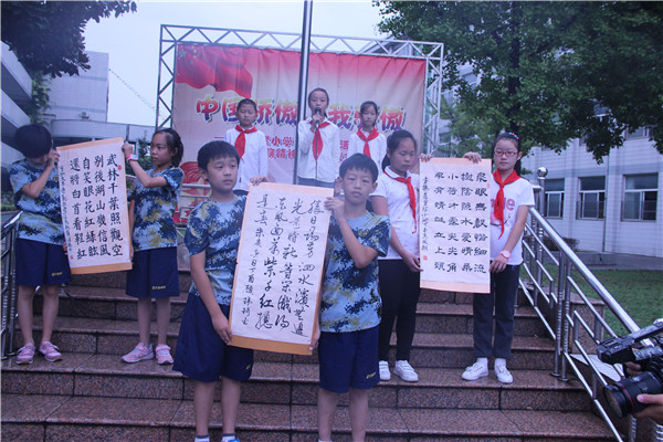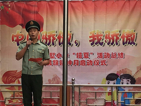 开学典礼仪式 承继中华之精神 9月4日上午,全校师生齐聚篮球场,举行以“中国骄傲、我骄傲”为主题的开学典礼暨“民族精神月”启动仪式。同时,我们邀请到了武警水电第五支队的8名武警叔叔一起参与了我们的活动。 首先举行了升旗仪式,担任升旗护旗的就是5名武警战士。随着武警叔叔们出旗时铿锵的踏步声,同学们不由得站直身子,肃然起敬。伴随着国歌声响起,同学们高敬队礼,向国旗表达少先队员最崇高的敬意;大声唱响国歌,抒发少年儿童内心最真挚的爱国情怀。 接着,孩子们通过笛子合奏《骏马奔驰保边疆》、情景表演《厉害了,我的“兵”》、书法秀、配乐诗朗诵《我们爱你啊,中国!》等形式多样的节目,向全校师生展示了自己的风采,描绘自己暑期学习锻炼的骄傲体验。同时,他们的节目中渗透了令人骄傲的传统文化元素,让大家又一次感受着中华传统文化、中国民族精神的骄傲内涵。 参与活动的武警甘叔叔,给大家做了一次慷慨激昂的国旗下讲话。甘叔叔讲述了自己作为一名共和国军人的骄傲。他们接过革命先辈的接力棒,承担保卫祖国、服务人民的责任,在抗震救灾、抗洪抢险、建设国家中无私奉献着自己,书写着一名军人的骄傲。 活动最后,关心同学成长的李校长在讲话中,希望大家把祖国引以为傲的传统文化、民族精神,变成激励自己不断进步的动力。不断走进书籍、走进生活,了解更多的中国骄傲,汲取更多的精神养分,在学习中、活动中锻炼自己、提升自己,用行动去创造更多属于自己的骄傲。李校长希望每一个同学都能成为学校的骄傲,成为祖国的骄傲。 传承中华骄傲之文化,承继民族伟大之精神。西小学子将继续行走在路上……