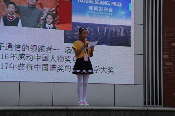 为迎接十九大的召开,让每一个少先队员更好地了解中华骄傲,认识到科技对未来生活的重要,9月18日,我校举行了“红领巾喜迎十九大”之“寻访中华骄傲,科技创新未来”的微队课,本次队课由五1中队承担。 微队课上,主持人由暑假里热播的《战狼》导入,一下子就把同学们引入了那个恢弘的场景。首先队员们从目前受世界瞩目的量子通信谈起,介绍了量子通信是一种新型的通讯方式,量子通信的成功发射标志着中国在这个领域的领先地位。最让同学们震撼的是中国量子卫星成功发射的视频资料,让同学们见证了卫星发射振奋人心的时刻。 接着队员们向大家介绍了中国的航天航空技术,“两弹一星”“载人航天”,其中月球探测的“嫦娥一号”更是让同学们惊叹不已。高铁“复兴号”的诞生,标志着我国铁路技术装备水平进入一个崭新时代。“复兴号”的成功研制生产,标志着高速动车组已经走在世界先进前列。将中国标准动车组命名为“复兴号”,展示了中国铁路服务经济社会发展、创造人民生活新时空的美好愿景。五1班同学对高铁的介绍又一次让全校同学惊叹于我国的强大科技力量。 最后,队员们还分别从海、陆、空三方面对我国的军事力量进行了介绍,“中华神盾”驱逐舰、能在陆地上打击航母的“东风29号”弹道导弹、中国新型空警预警机,一张张图片,让在场的师生发出阵阵赞叹。短短的二十分钟时间,五1班的队员们带领着全校同学在时光中穿梭,让每一位同学领略到了中国无比强大的科技力量,让每一个同学为自己是一个中国人感到骄傲和自豪!