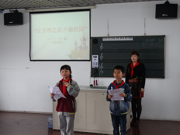 2017年10月12日中午,三(2)班在中队辅导员朱琴芳老师的带领下拉开了我校主题中队会观摩活动的序幕。三(2)班全体队员、全校中队辅导员、学校大队辅导员参加了观摩学习活动。 活动以“让文明之花开遍校园”为主题,紧紧围绕“文明、礼貌”开展队课内容。小品、诗朗诵、三句半、相声,三(2)班的孩子们个个才华横溢。活动准备充分,内容丰富精彩,情节感人备至。队员们精心的活动策划和内容编排让文明教育深入每个观摩者的内心,为大家呈现了一堂精彩的少先队中队观摩课。 本次主题中队会观摩活动,给少先队员们了搭建自我教育、自我锻炼的舞台,充分展示了少先队员们的风采,为我校中队辅导员提供了主题中队活动的参照模式,将校园核心文化中的文明和礼仪深深地扎根在每一个人心中。