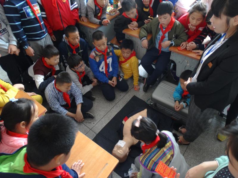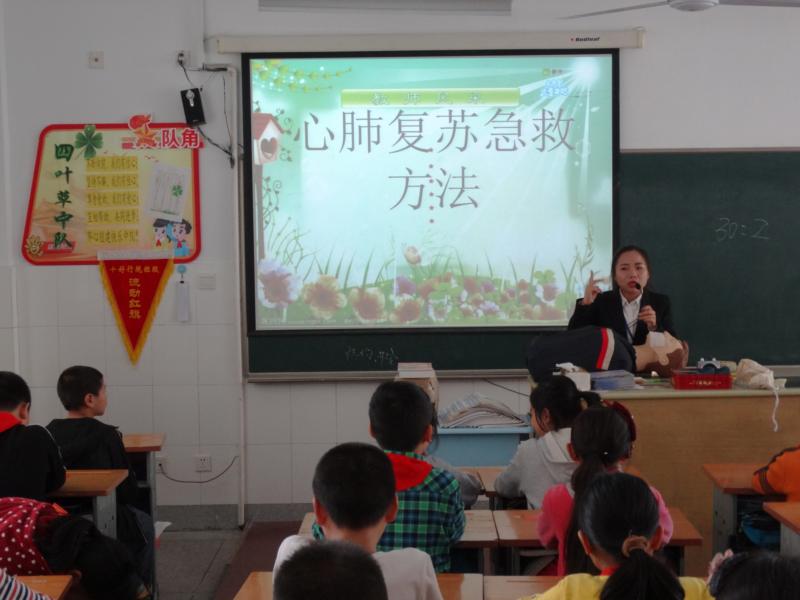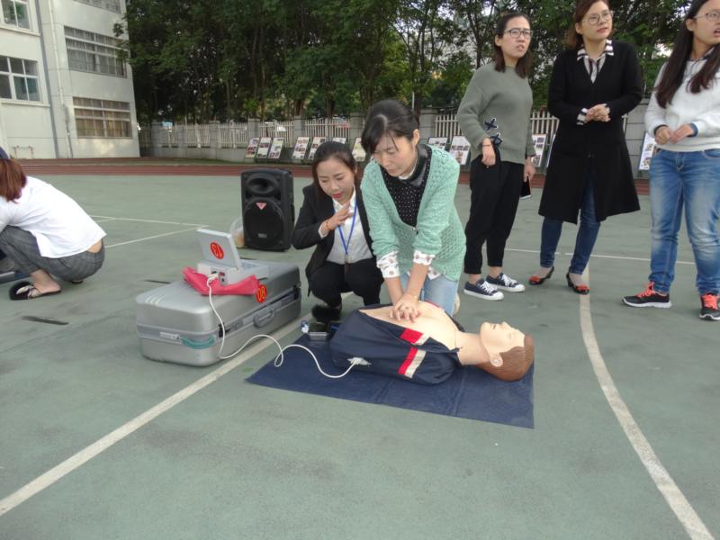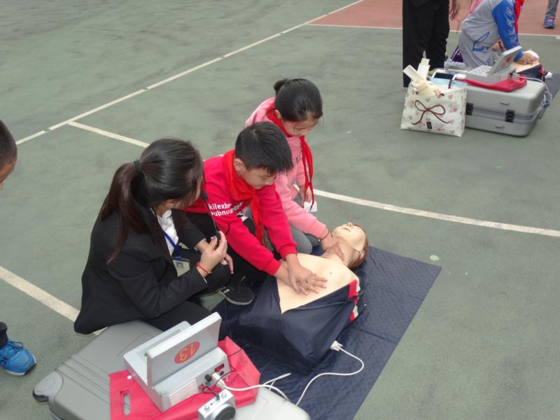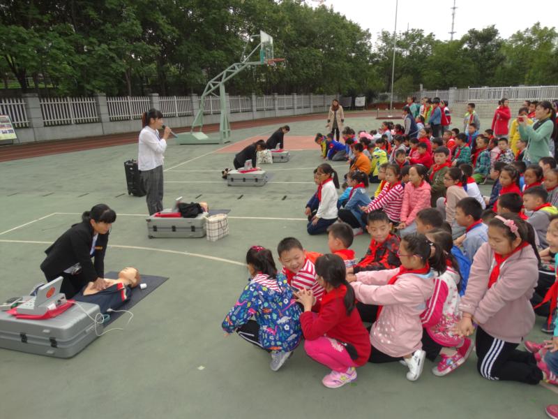 操场上的体验活动最为激动人心。同学们在老师的指导下体验心肺复苏的完整过程,同学们心里又激动又像十五个吊桶打水—七上八下 ,生怕抢救失败让同学看了笑话,有损颜面。经历了一个下午的紧张比赛,虽然只有五(3)班的同学夺得第一,但所有同学和老师都踊跃参与。 应急避险进课堂,安全意识记心间,心肺复苏来实践,危急时刻救一命。本次演练活动十分美满和充实,在观看视频、实践操作活动中,师生们了解了许多急救知识,也学到各类受伤包扎和心肺复苏的方法,为急救生命开辟了一条道路。