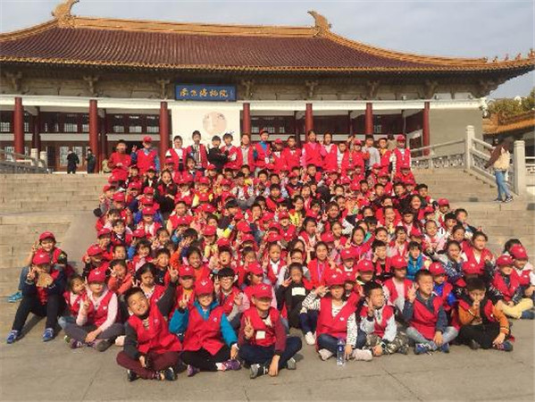 11月12日,我校组织100多名小记者前往南京博物院、栖霞山进行采风活动。 上午,小记者们来到了南京栖霞区,攀登被誉为“金陵第一明秀山”的栖霞山,欣赏它独特的风景和深厚的历史人文底蕴。栖霞山素“六朝胜迹”之称,拥有“一座栖霞山,半部金陵史”的美誉。历史上曾有五王十四帝登临栖霞山,历史古迹遗址80多处。每年的11月中下旬是去栖霞山欣赏绚烂的五彩景象的最好时节,也是栖霞山枫叶的最佳观赏期。抬头望去,满山的枫林映入我的眼帘,枫叶随风飘舞,栖霞山的枫叶果然名不虚传,从地上捡起一片片叶子,摸上去光滑柔嫩,有的像一颗颗火红的五角星,有的像一双双小巧玲珑的手,更像一团团燃烧的火焰,让人不由自主地想起杜牧“停车坐爱枫林晚,霜叶红于二月花”的名句。抬头望去,地面如同铺了一层厚厚的红地毯,整片整片的枫林如同被太阳染成了绚丽的晚霞。游览栖霞山,不仅仅是欣赏美丽的自然风光,更是被这些悠久灿烂的文化所吸引。小记者们曲折迂回,爬这座仅有两百八十多米海拔的名山倒也并不轻松,好在山中清风徐来,成群结队的游客不时对我们小记者啧啧称赞,大大缓解了爬山的疲劳。不知不觉小记者们就来到了“始皇登临处”,一阵凉风吹过,让人心旷神怡。举目远眺,长江就在脚下,宛如一天巨龙,盘亘而过,好一派绝胜美景! 午餐过后,我们来到了南京博物院。博物馆外观是仿辽建筑,陈列室内部为西式建筑样式。徜徉期间,小记者们观赏一件件精美的文物,感受中华民族悠久灿烂的文化历史,仿佛是穿梭在中华民族五千年的历史长河之中,他们不仅领略了智慧的华夏祖先所创造的辉煌灿烂的历史文化,还感受到了中华历史的冲突、沿革和沧桑。 一天的行程虽然匆忙,而且疲惫,但小记者们享受了一场历史文化和自然景观的盛宴,真是不虚此行。(撰稿:卢庆平摄影:小记者辅导老师审稿:徐建峰)