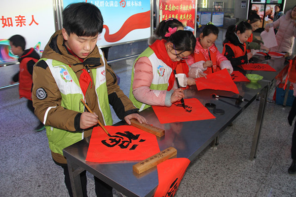 2月7日-8日,由新北团区委、新桥镇团委和高铁常州北站联合举办的“i在春运”志愿服务活动在常州高铁北站举行,通过微信招募的60余名志愿者,为旅客提供引导咨询、秩序维护、重点帮扶等便民服务,其中最小的志愿者只有6岁。此外,具有书法特长的小志愿者们还在现场书写“福”字、春联,送给旅客,温暖了匆匆赶路的人们。