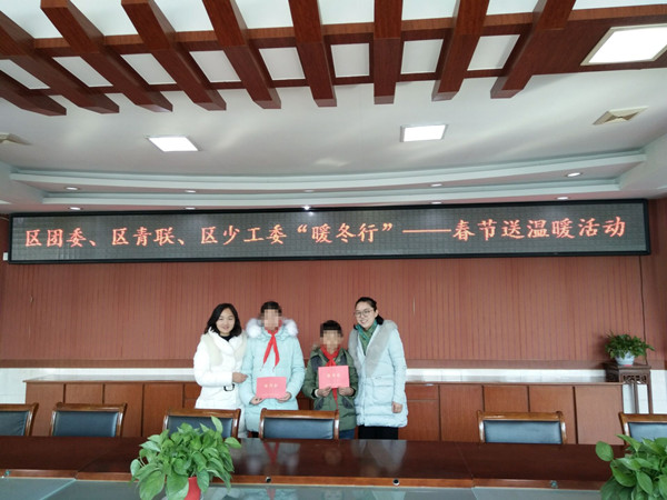 凛冽的寒风挡不住对贫寒学子的深情,2月3日上午,新北区少先队总辅导员秦琳代表区团委、区青联、区少工委为小河中心小学2位家庭困难的学生,仔细询问、了解孩子们的学习和生活状况,鼓励孩子要勇敢面对困难、自立自强,树立明确的学习目标,并送上了新年慰问金和新年小礼物,让他们在这个寒冬里感受到了春天般的温暖。