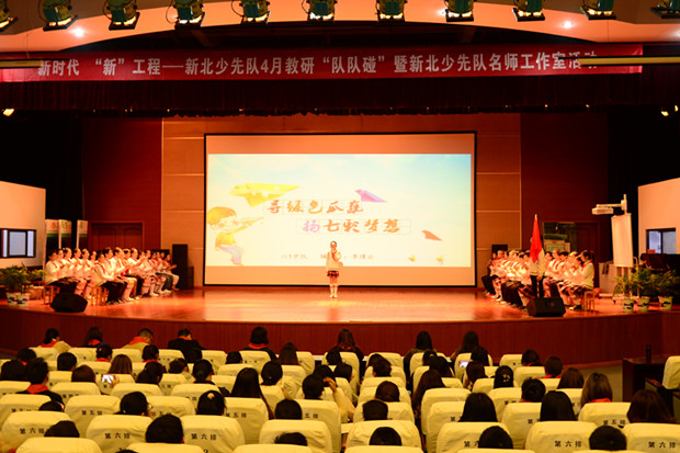4月4日下午,2018新北少先队教研4月“队队碰”暨新北少先队名师工作室活动在新北区奔牛实验小学报告厅举行。区少先队总辅导员秦琳、副总辅邱瑶、王小鹰和新北少先队名师工作室全体成员、全区部分兄弟学校的辅导员代表、奔牛实小的全体辅导员以及奔牛实验小学少先队员代表共500余人参加了此次活动。整个活动由新北区少先队副总辅王小鹰主持。