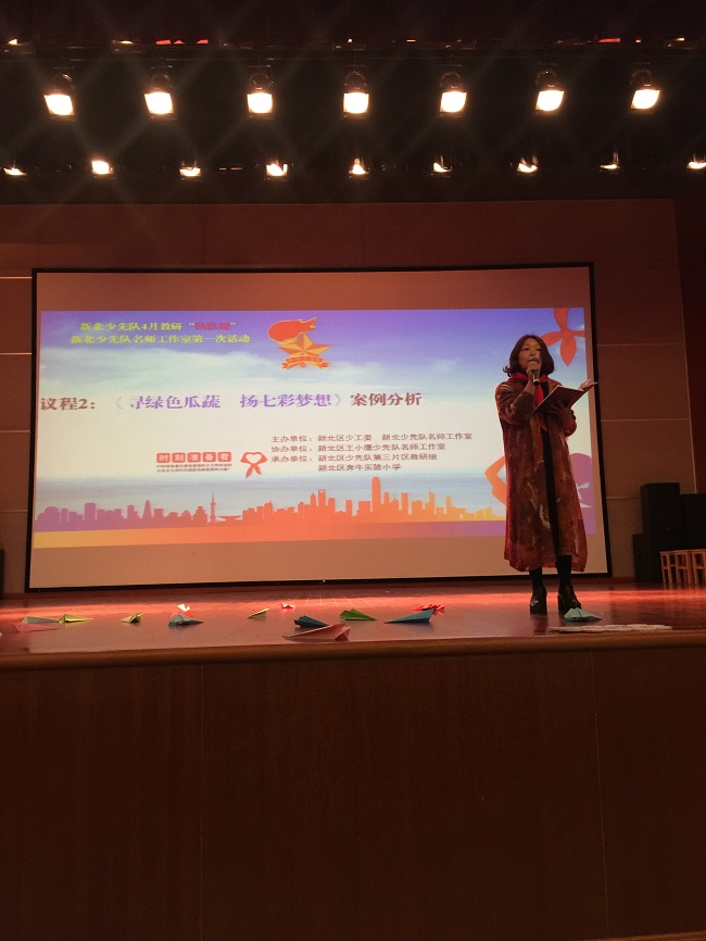 第四个议程:明方向 新北区少先队总辅导员秦琳围绕2018新北少先队名师工作室成员职责和年度工作计划进行了解读和强调,希望所有的辅导员都能紧扣工作室“微共体”研究项目,做到一“活”二“明”三“巧”,纳言力行,争做新时代的辅导员,努力发挥新北少先队名师工作室的作用,践行少先队改革创新,推动新北少先队工作再上新台阶。
