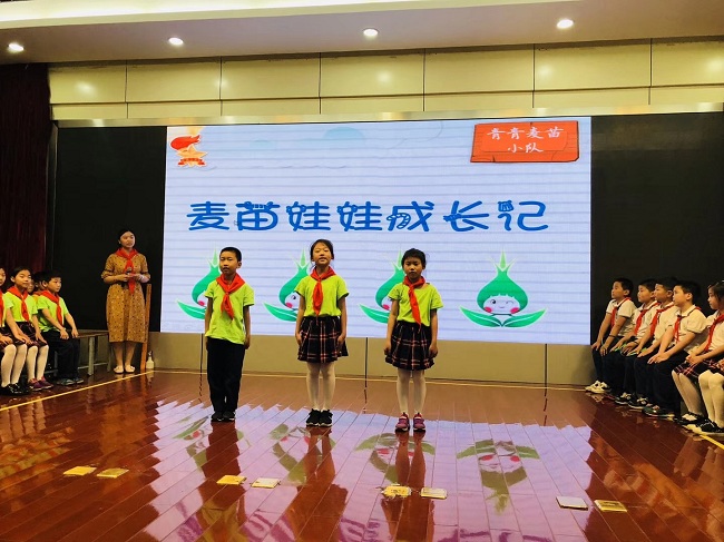 听活动—— 趣味 真实 春江中心小学中队辅导员杨吉娣老师带领二(4)中队的小队员们,围绕《我和小麦共成长》活动主题,组建“萌萌麦种小队”、“青青麦苗小队”“甜甜麦叶小队”、“美美麦食小队”分别从小麦的种子、小麦的成长、小麦做成的美食等方面向大家展示队员前期开展的序列中队研学活动的成果。队员们用歌唱、编小故事、采访、制作等丰富的形式和自信的表现向现场的所有辅导员展示了“会提问、会思考”“爱观察 爱实践”“有研究 有创造”“爱劳动 爱分享”的新时代好队员的特质。